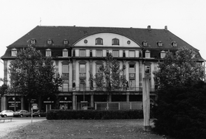 Das ehemalige "Bahnhofshotel" wurde 1912 zur Einweihung der Hauptbahnhofes fertig. Es ist ein Entwurf des Darmstädter Architekturbüros Markwort und Seibert. Äußerlich ähnelt das ehemalige "Bahnhofshotel" stark dem einstigen "Hotel zur Post", das auf der nördlichen Ecke des Blockes steht. Es stammt ebenfalls vom Büro Markwort und Seibert und sollte ursprünglich mit einem Riegel mit dem "Bahnhofshotel" baulich verbunden werden.