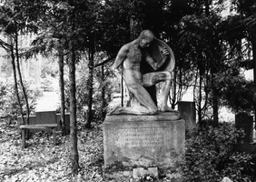 Max Edler von Planitz fiel 1915 in Frankreich. Sein Grabmal erinnert an den gefallenen Soldaten. Es zeigt einen knienden Krieger, der sich mit letzter Kraft hinter seinem schützenden Schild verbirgt. Das Grabmal stammt aus dem Jahre 1920, ist eine Arbeit von Ludwig Habich und gehört damit zu den frühen expressionistischen Werken. Die am Arm schadhafte Plastik wurde aus einem Muschelkalkblock gehauen.