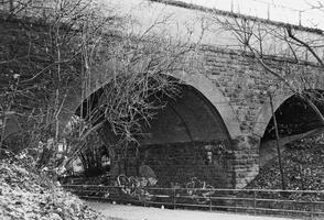 Dreibogiger Sandsteinviadukt von 1892 über den Kirdorfer Bach und seinen Uferweg (nachträglich nach Osten erweitert).