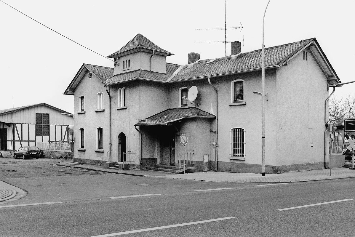 Auf der Ortsseite südlich der Strecke 1869 als standardisierter Putzbau des Klassiszismus errichtet (ähnlich wie Bf Großen-Buseck). Ostwärts um 1912 erweitert. Güterschuppen um 1910 aus Fachwerk im Jahr 2011 abgebrochen - Im Osten Flügelsignale (2).