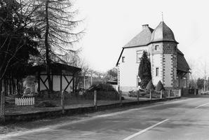 Typenbau von 1903 (wie Bf Ober-Hörgern) auf der Ortsseite östlich der Strecke, traufenständig mit giebelseitig abgewalmtem Mansarddach und oktogonalem Kuppelturm vor dem Südosteck; separater Fachwerkschuppen im Süden.