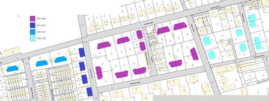Die Jahre nach 1923 bringen eine stärkere Verdichtung des Wohnens mit sich. Die Mietshäuser in der Fuldaer Straße 22 und 24 sowie in der Hünfelder Straße 13 und 15 wurden durchweg mit drei Vollgeschossen ausgeführt. Der kreuzförmige Grundriss der Bauten wurde leicht gestreckt. Die Bauten fußen auf einem schwarzen Basaltsockel mit gelben Backsteinflächen und Gliederungselementen aus rotem Backstein, während die Fensterbänke in Beton ausgeführt wurden. Vor allem die Fensterachsen werden durch den roten Backstein hervorgehoben und durch Schmuckformen besonders betont. Lediglich das Haus Nr. 15 wurde im Grundriss quadratisch und komplett in rotem Backstein ausgeführt. An der Nordseite sitzt das wenig vorspringende Treppenhaus. Die Bauten weisen Bauformen auf, die bereits am Verwaltungsbau der Cassella-Farbwerke (1920/21) in der Hanauer Landstraße 526 Verwendung fanden. Insbesondere das Haus Nr. 15 besitzt vergleichbare geschossübergreifende rustizierte Wandvorlagen, die die Fensterachsen begleiten.