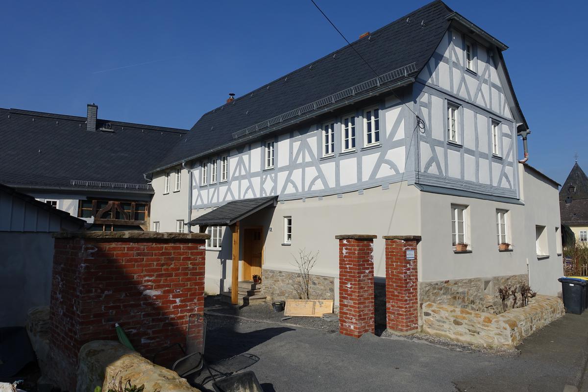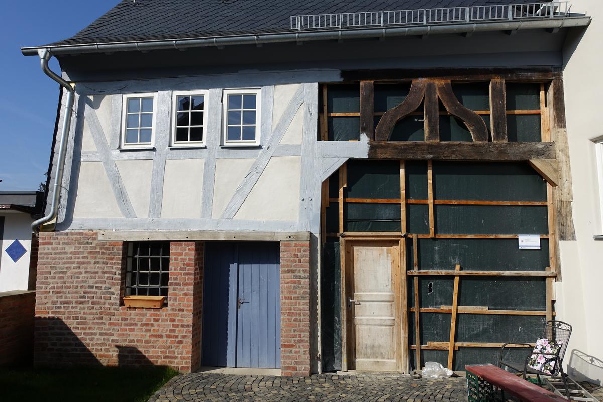 Das giebelständige, zweigeschossige Wohnhaus mit massivem Erdgeschoss und Teilunterkellerung weist im Obergeschoss ein dreizoniges, aufwendig gestaltetes Eichenfachwerk mit Mannfiguren, profilierten Hölzern und geschwungenen, zum Teil genasten Fußstreben auf. Das Sparrendach mit liegendem Stuhl wurde mit dem ortstypischen Krüppelwalm ausgebildet.