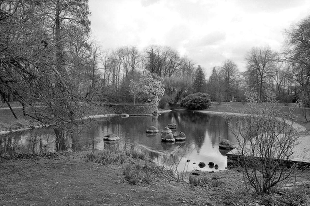 Ein Obelisk (siehe "Denkmal für Winter von Güldenborn") am Eingang Nordstraße, Rudimente zweier historischer Brücken, so das Astwerk-imitierende, dabei klassizistische Formen aufgreifende Geländer der Weiherbrücke und eine floral interpretierte Brücke im Osten des Geländes (1902) gehören zum historischen Bestand. Erhalten blieben darüber hinaus die massive Einfriedung entlang der Nordstraße sowie der eiserne Staketenzaun entlang der Heinrich-Bott-Straße, der in seinem Ende an der Kreuzung zur Eugen-Kaiser-Straße in die ehemalige Stadtgrabenbrücke von 1886 übergeht. Die erhaltenen Brückenwangen aus Kunststein sind in acht (Nordostseite) sowie 4 (Südwestseite) Segmente mit recht kunstvoll geschmiedeten Ornamentgittern unterteilt.