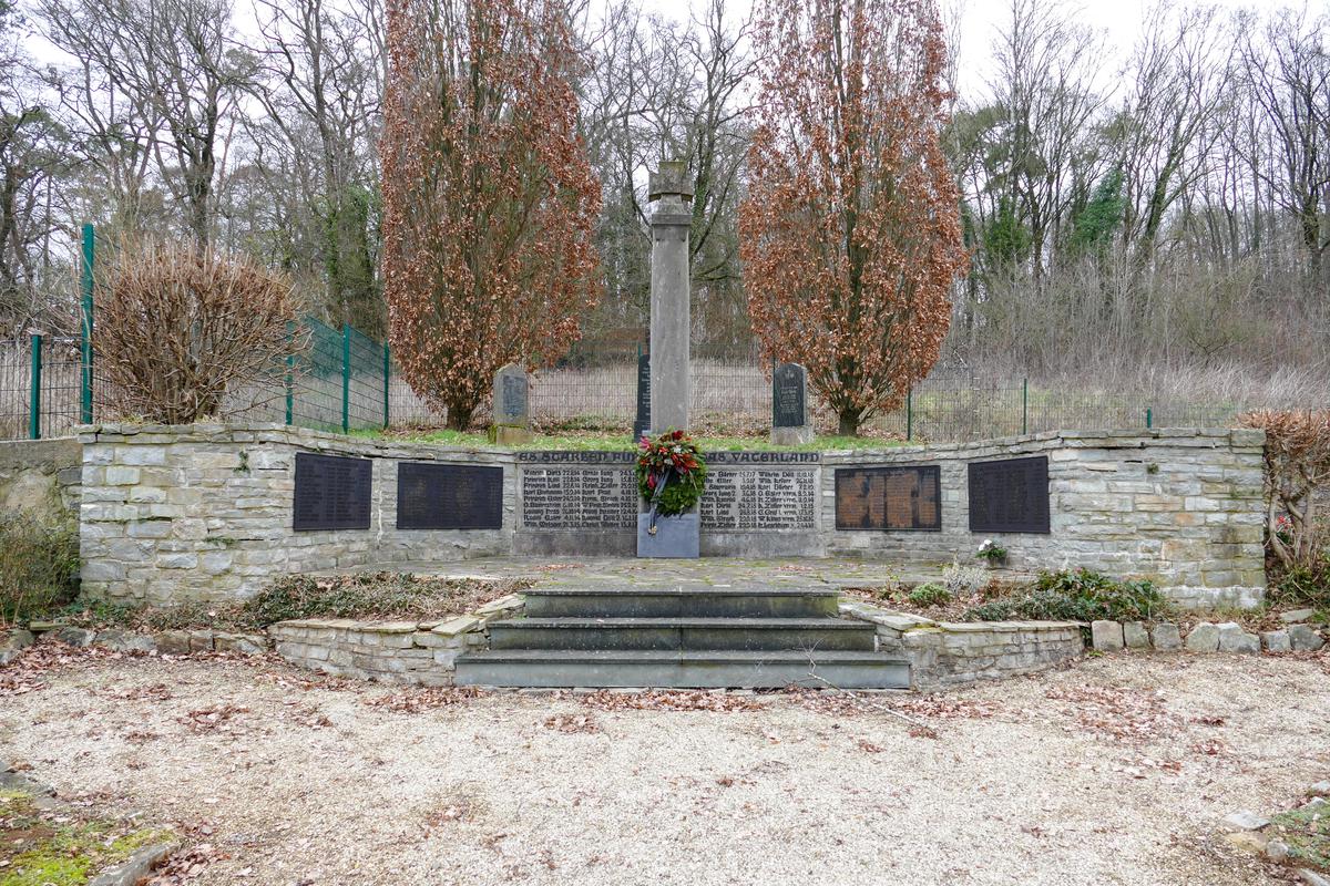 Nördlich des Hauptweges des Friedhofs befindet sich ein Denkmal für die Gefallenen des Ersten und Zweiten Weltkrieges. Das Denkmal liegt aufgrund der Hanglage erhöht auf einem Podest und wird über drei Stufen sowie einen von Hecken gesäumten Weg erschlossen. Auf der platzartigen Anlage steht zentral eine Säule mit schwarzem Kreuz vor einem Mauerzug aus fränkischem Muschelkalk. Dort sind die Listen der Gefallenen des Ersten Weltkrieges mit folgender Inschrift: „Es starben für das Vaterland“ zu lesen.