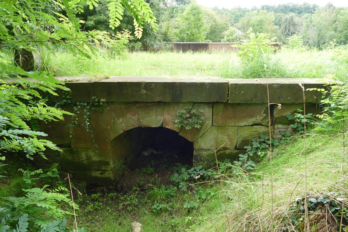 Das Gestänge blockierte den Weg vieler Landwirte auf ihre Felder und Wiesen. Daher errichtete man diese rund sieben Meter breite, aber bemerkenswert flache, einbogige Sandsteinbrücke, unter der das Gestänge ungehindert verlief. Über sie verlief zeitweise auch der Weg nach Borsdorf. Die Pflasterung ist ebenso erhalten, wie Randsteine, die auf das Vorhandensein von „Bürgersteigen“ deuten. Einige der sauber bearbeiteten Werksteine der Flanken weisen Handwerkszeichen auf.