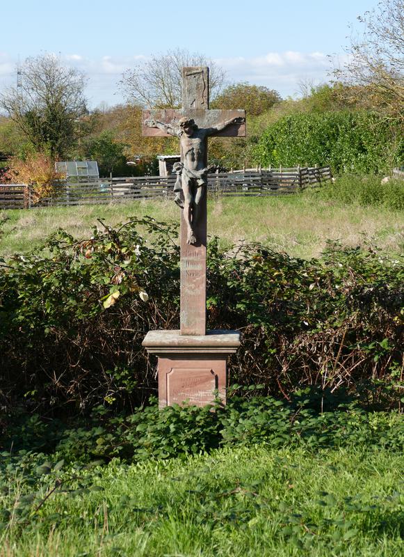 Wegkreuz nahe der B40 westlich der Ortslage Wicker. Das Sandsteinkreuz ist inschriftlich 1763 datiert, der Sockel wurde erneuert, was ebenfalls inschriftlich festgehalten wurde. Korpus detailreich gearbeitet, das Kreuz hingegen einfach gestaltet.